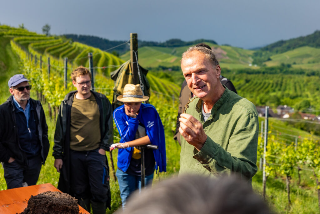 Die WG ist dafür bekannt, neue Methoden im Weinbau auszuprobieren, um von den Erfahrungen zu profitieren und sich weiterzuentwickeln. „Das erfordert eine gewisse Portion Mut und Selbstvertrauen ins eigene Handwerk“, sagt Paul Hofmann. Er ist Projektmanager für das Humusprojekt beim Naturpark Schwarzwald Mitte/Nord und arbeitete selbst viele Jahre als Landwirt.