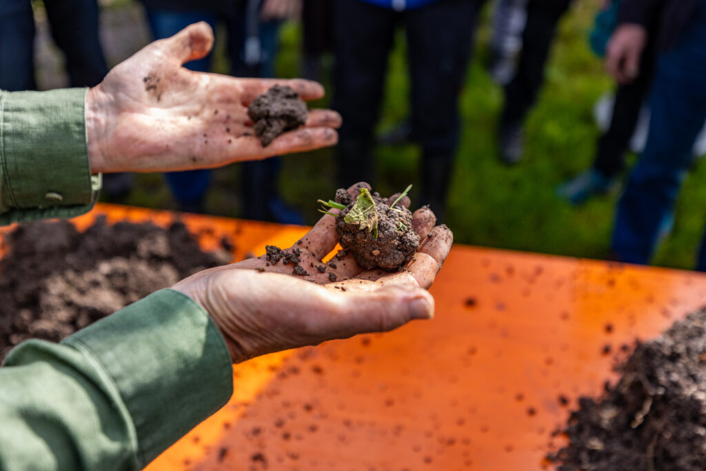 Die teilnehmenden Landwirte können auf ein umfangreiches Weiterbildungsangebot zugreifen. In den Seminaren erhalten sie das notwendige Wissen zu Bodenprozessen und Techniken zum Humusaufbau. Zum Angebot gehören mehrtägige Basiskurse, themenspezifische Aufbaumodule, Feldtage auf beispielhaften Höfen und regelmäßige Humus-Treffen zum Praxis-Austausch. Die Inhalte gestalten die Projektmanager des Naturparks, Paul Hofmann und Helen Orth, gemeinsam mit renommierten Experten aus dem Bereich der regenerativen Landwirtschaft. „Sich auszutauschen und über die unterschiedlichen Möglichkeiten informiert zu sein ist sehr wichtig, weil die Maßnahmen individuell auf den Betrieb abgestimmt sein müssen“, erklärt Hofmann. Bei der Durchführung des Projekts kooperiert der Naturpark mit dem gemeinwohl-orientierten Unternehmen positerra. Unterstützung für das Humusprojekt und den Humusaufbau in der Region kommt außerdem von unserem langjährigen Naturpark-Partner duravit.