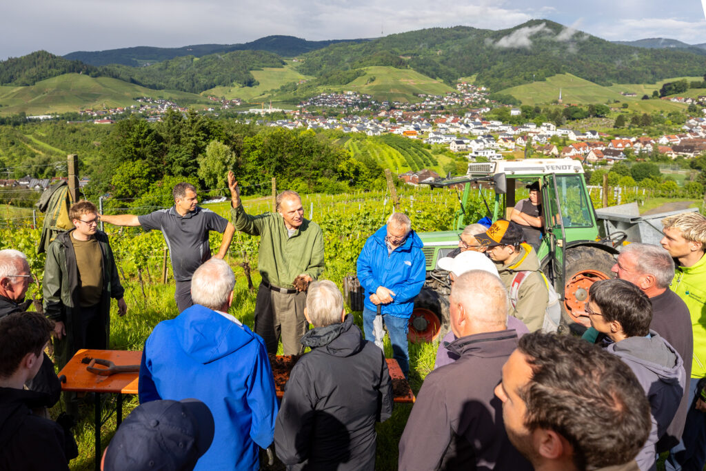 Hitzeperioden und Starkregenfälle – durch den Klimawandel nehmen die Extremwetterereignisse zu. Wie können Winzer aus der Region darauf reagieren und ihre Reben klimafit machen? Um diese Frage ging es beim Humus-Feldtag des Naturparks Schwarzwald Mitte/Nord bei seinem Partner Waldulmer Winzergenossenschaft am Freitag (24. Mai) in Kappelrodeck-Waldulm (Ortenaukreis).