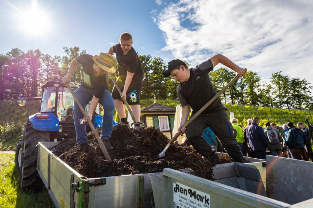 Zu Beginn erklärt der Weinbautechniker und Rebsortenkundler Josef Engelhart von der Bayerischen Landesanstalt für Weinbau und Gartenbau in Veitshöchheim, wie der Boden beschaffen sein muss, um gute Weine zu erzielen. Anschließend geht es in die Praxis: Die teilnehmenden Winzer analysieren unter fachkundiger Anleitung die Reben und den Boden visuell. Außerdem nehmen sie Bodenproben für einen Qualitätscheck. Dann bringen die Jungwinzer der Waldulmer WG um Christian Hodapp den selbst hergestellten Traubentrester als hochwertigen biologischen Dünger in den Reben aus.