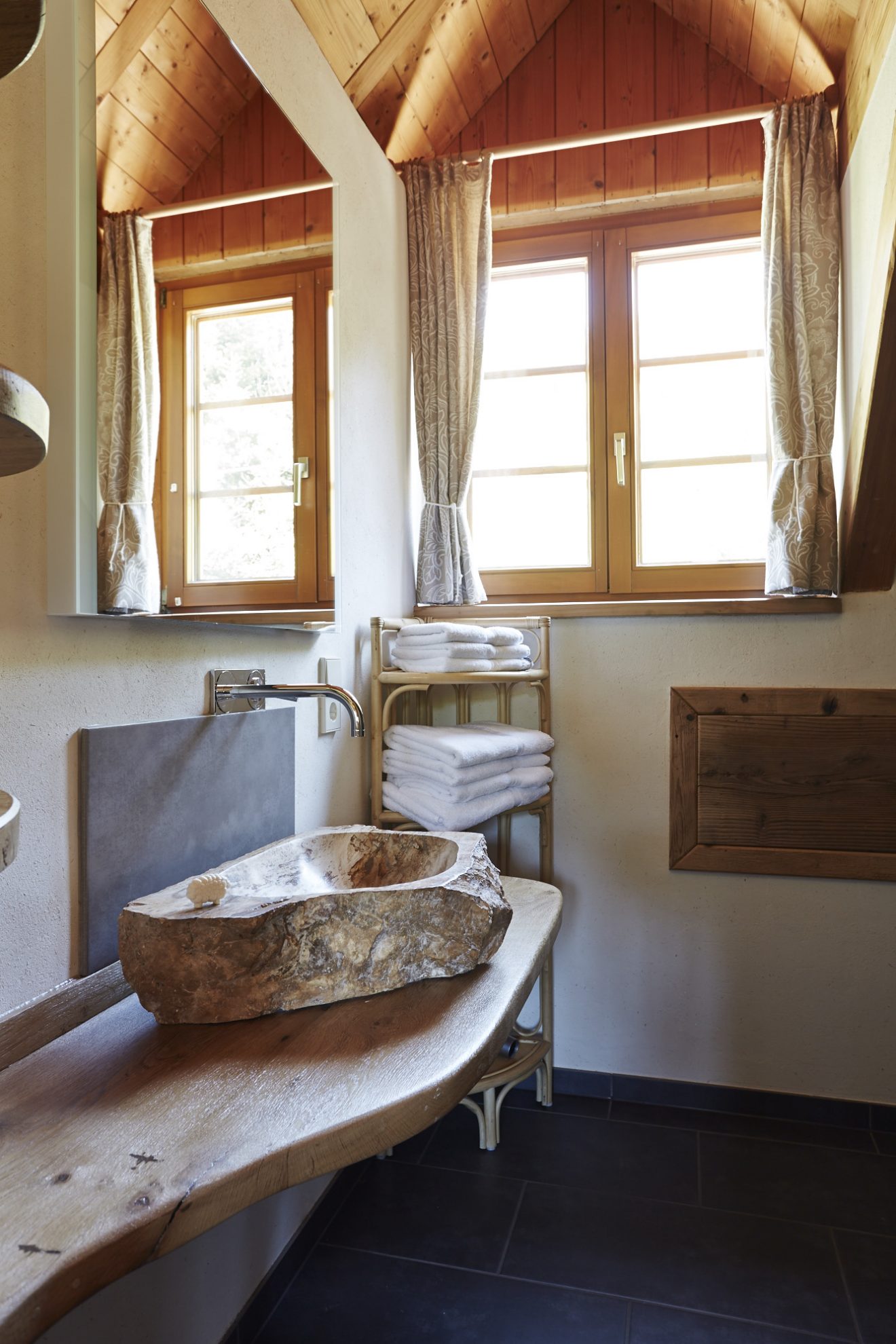 Im „Backhaus“ hatten Brigitte und Ulrich Müller früher ihre Backstube. Darüber befindet sich die Backhaus-Ferienwohnung. Seit die Backstube im November 2017 in einen Anbau des Bauernhofgebäudes umgezogen ist, richten die Müllers dort eine zusätzliche rustikale Ferienwohnung im Erdgeschoss ein, die im August fertig wird. „Wir statten sie mit einem Lehmputz aus, der gut fürs Raumklima ist“, erzählt Brigitte Müller, „und mit einem schönen alten Eichendielen-Fußboden. Für den Charme der alten Backstube sorgen die Ofentürchen, die sichtbar bleiben. Das Bad wird einerseits rustikal mit Holzbalken ausgestattet, andererseits modern mit weißen Fliesen und frei stehender Badewanne.“ Auch ein lichtdurchfluteter Wintergarten und eine Außensauna sind geplant.