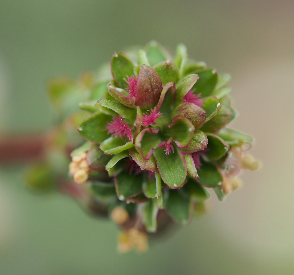 Eindeutig zu erkennen ist der Wiesenknopf zur Blütezeit an seinen markanten ein bis zwei Zentimeter großen, roten Blütenköpfchen. Diese setzen sich aus zahlreichen, dicht an dicht stehenden Einzelblüten zusammen. Interessant ist dabei, dass sich die Blüten in den Köpfchen voneinander unterscheiden, ja sogar zu unterschiedlichen Zeiten blühen. Ganz oben präsentieren sich die weiblichen Blüten, dazwischen zwittrige und unten männliche Blüten.