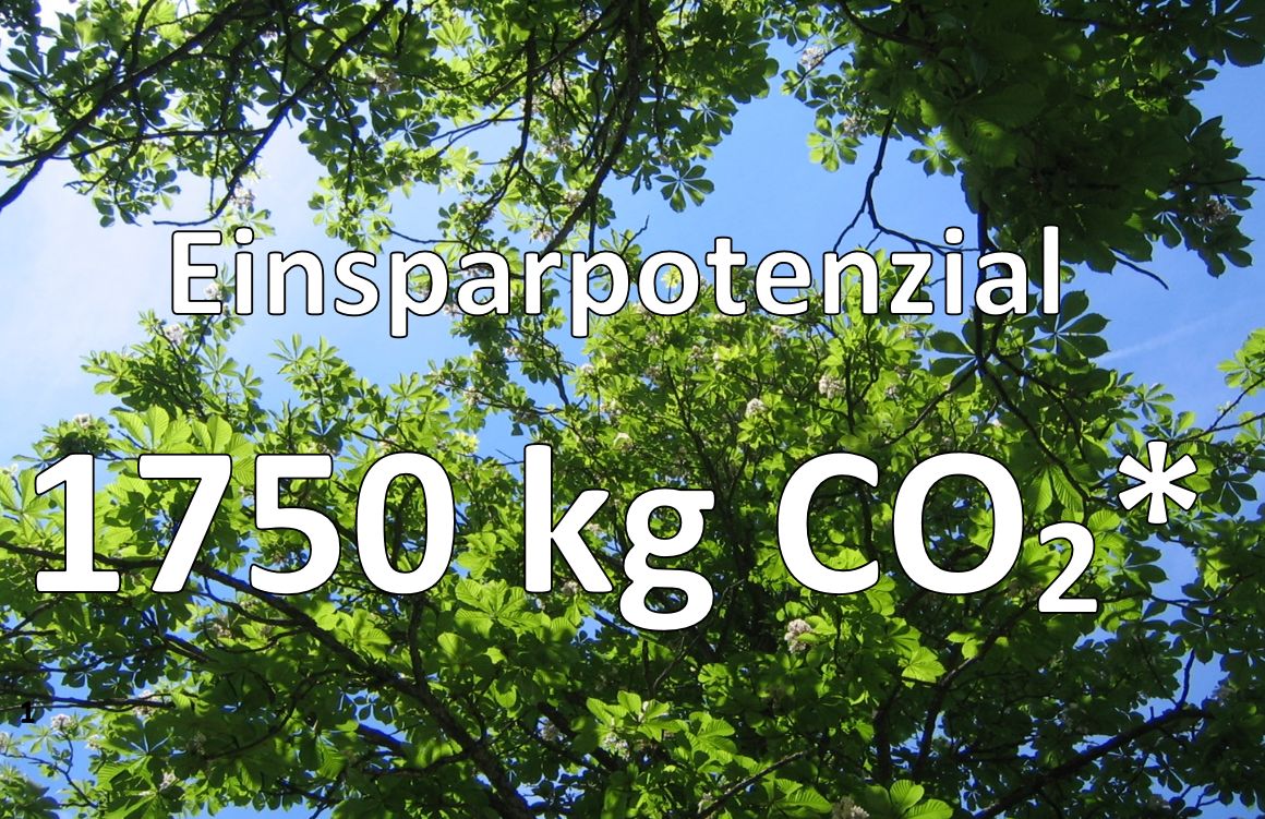 *Berechnungsgrundlage: THG-Ausstoß eines deutschen Durchschnittsbürgers (UBA 2016), Umstellung auf klimaneutrales Heizen (zb. durch Wärmepumpe mit 100% Ökostrom)