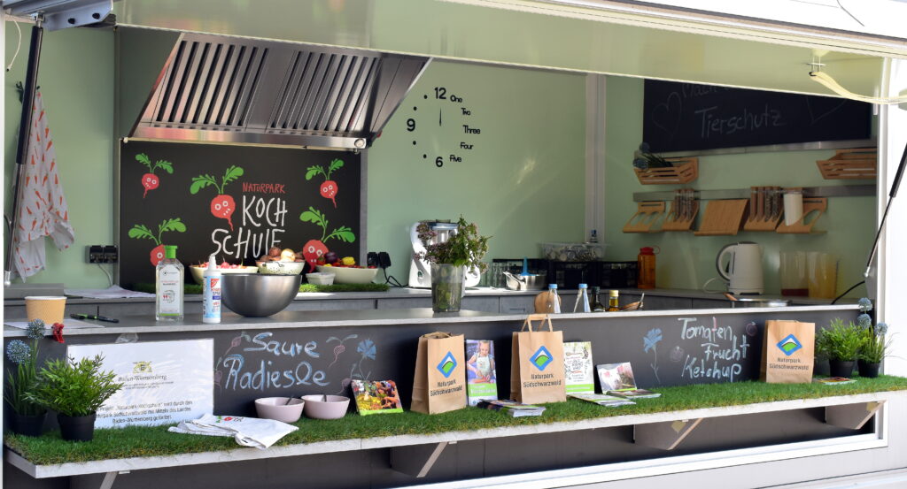 Die Naturpark-Kochschule kommt aus dem Naturpark Südschwarzwald. Sie besucht Kindergärten, Schulen, Naturpark-Märkte und verwandte Veranstaltungsformate, um Kinder und Jugendliche für eine nachhaltige Ernährung mit regionalen Lebensmitteln zu begeistern. Die Besonderheit des Projekts: die Küche auf Rädern, die alles enthält, was zum gemeinsamen Kochen benötigt wird. Die Naturpark-Kochschule bietet zudem in Zusammenarbeit mit der AG Naturparke Baden-Württemberg digitale Kochkurse für die ganze Familie an.