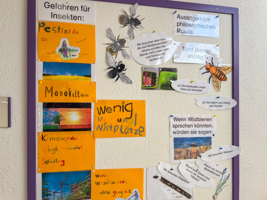 Für das Apfel-Modul schaffte die Schule eine eigene Obstpresse an. „Es war sehr umständlich, in eine Mosterei zu fahren, um die Herstellung von Apfelsaft mitzuverfolgen“, erklärt Urban-Traub. „Deshalb wurde für die Schule eine eigene Obstpresse zusammen mit der Obstmühle angeschafft. So können die Kinder ihren Apfelsaft selbst herstellen. Die Äpfel stammen von Apfelbäumen direkt neben der Schule.“