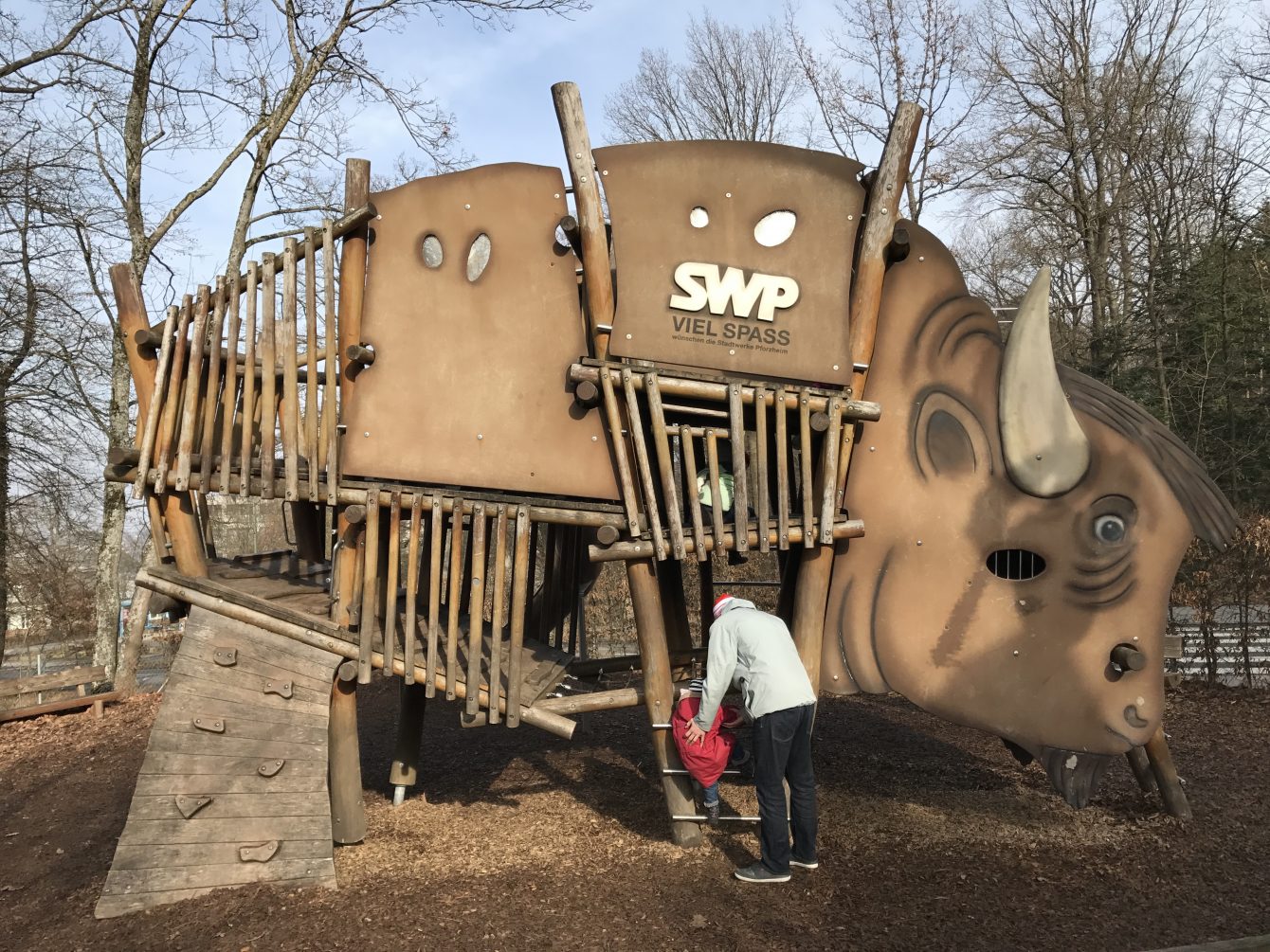 Tiere angucken – schön und gut! Aber Kinder wollen spielen und sich bewegen, deshalb gibt es im Wildpark Pforzheim mehrere Kinderspielplätze. Dazu gehören auch ein Baumhaus mit Rutsche und ein großes Kletter-Wisent. Für die etwas Größeren und Erwachsenen mit Bewegungsdrang und Mut befindet sich auf dem Gelände des Wildparks ein (kostenpflichtiger) Wald-Klettergarten. Wer sich zwischendurch stärken möchte, kann es sich im Wildparkstüble bei warmen und kalten Gerichten aus der Region gut gehen lassen.