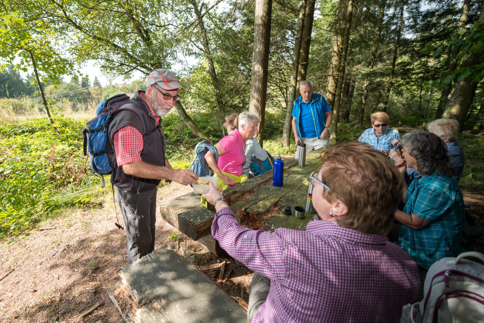 Weiter geht es über schmale Pfade bis zum Schwenkenhof. Die traditionelle Vesperstube ist weit über Schiltach hinaus bekannt für ihren Strammen Max und den Apfelmost. Wieder zurück auf dem Weg, geht es über alte Pilgerpfade bis zur Breitreute. Ein Weg entlang alter Grenzsteine zwischen Baden und Württemberg erzählt von der wechselhaften Geschichte dieses Landstriches. Nachdem ihr bei der Breitreute denhöchstgelegenen Punkt der Wandertour erreicht habt, führt ein leicht abfallender Weg zum Zollhaus, mit herrlichem Blick hinab ins Kinzigtal.