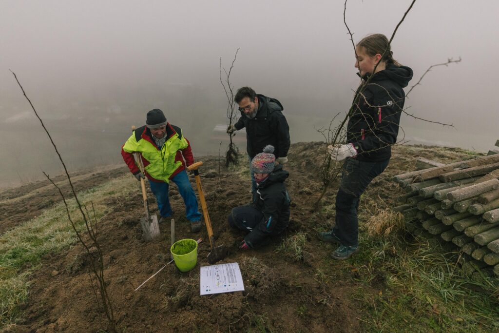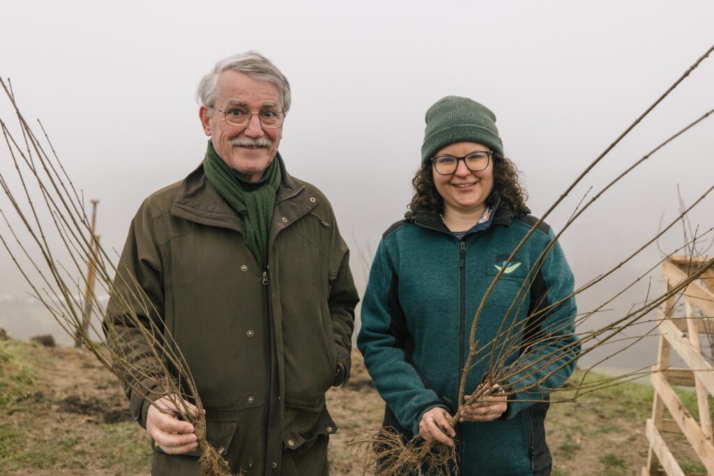Zum Abschluss seines zweijährigen Projekts „Blühende Weinberge“ hat der Naturpark Schwarzwald Mitte/Nord mit den Oberkircher Winzern am Dienstag (16. Dezember) auf bereits länger brachliegenden sowie frisch gerodeten Rebflächen in Kappelrodeck Hecken mit einer Gesamtlänge von 460 Metern gepflanzt. „Mit den neuen Heckenstrukturen schaffen wir wertvolle Lebensräume für zahlreiche Tier- und Pflanzenarten. Zugleich erhalten wir das charakteristische Landschaftsbild unserer Weinberge. Für mich ist diese Aktion heute der Höhepunkt in unserem Projekt ‚Blühende Weinberge‘!“, sagt der Geschäftsführer des Naturparks Schwarzwald Mitte/Nord, Karl-Heinz Dunker, bei der Pflanzaktion in Kappelrodeck.