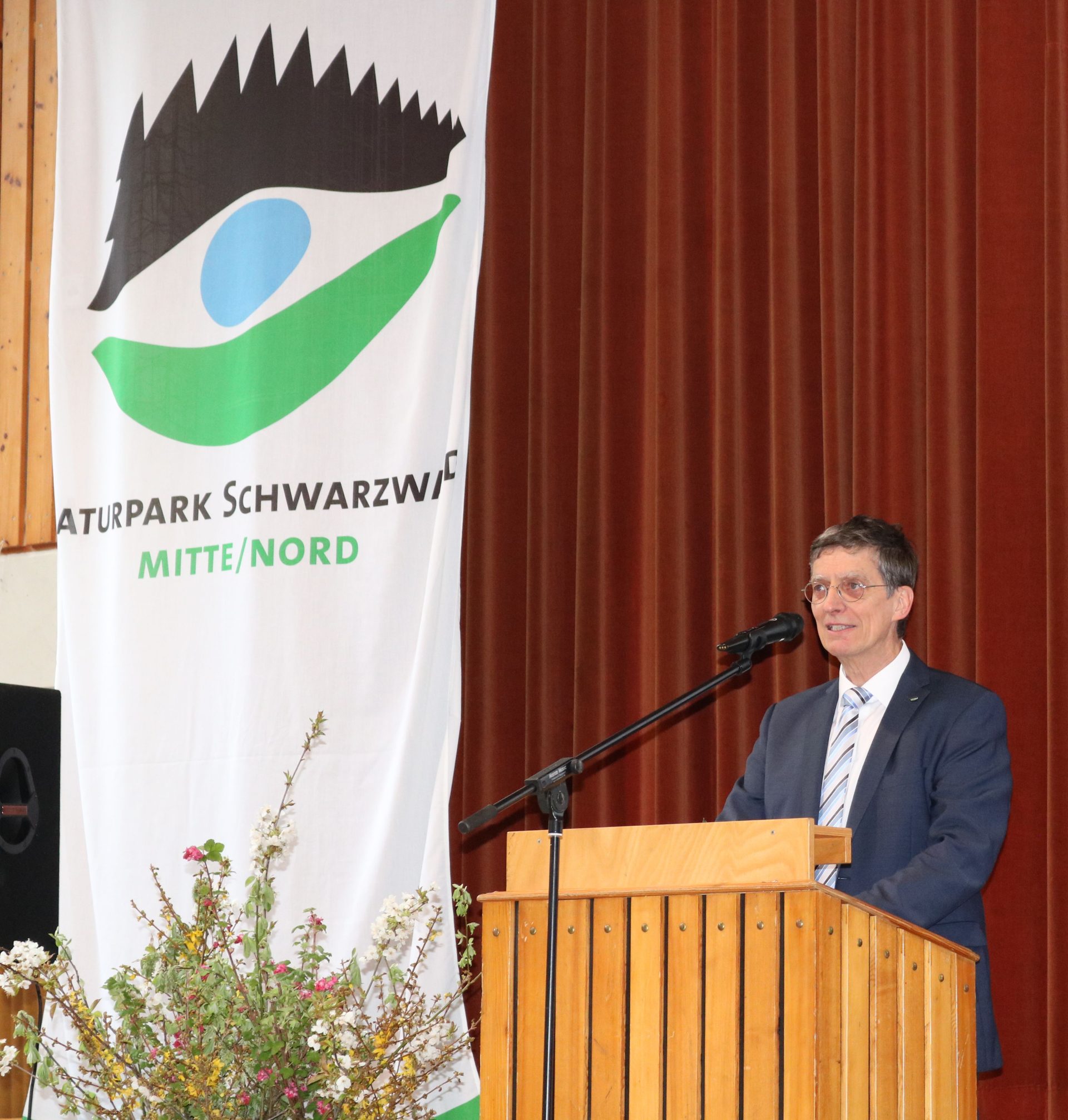 In seiner Rede an die Mitglieder dankte der Naturpark-Vorsitzende Prof. Dr. Dusch zunächst Fischerbachs Bürgermeister Thomas Schneider für seine Gastfreundschaft. Anschließend ging er näher auf einige zentrale Naturpark-Projekte ein. Der Fokus des Naturparks liegt in diesem Jahr auf den Bereichen Bildung und Klimaschutz.