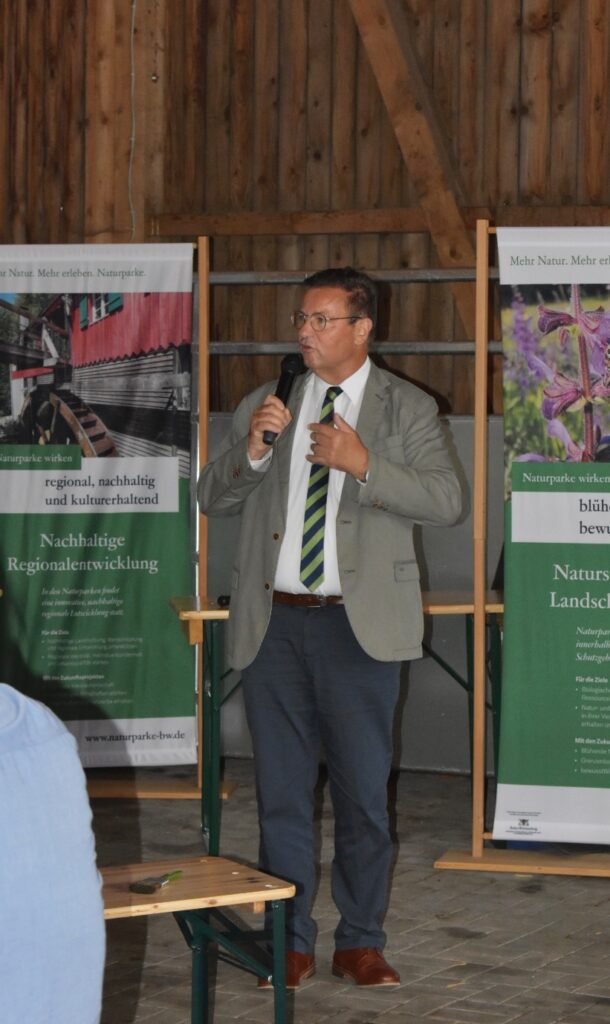 Exakt 20 Jahre später feierte die AG Naturparke Baden-Württemberg nun ihr Jubiläum. Veranstaltungsort war der Goldbachhof in Bernau, der den 50 Gästen regionale Leckereien vom Schwarzwald Bio-Weiderind bot. Gemeinsam mit Partnerinnen und Partnern sowie langjährigen Weggefährtinnen und -gefährten blickte man auf zwei ereignisreiche Jahrzehnte der Naturpark-Arbeit zurück.