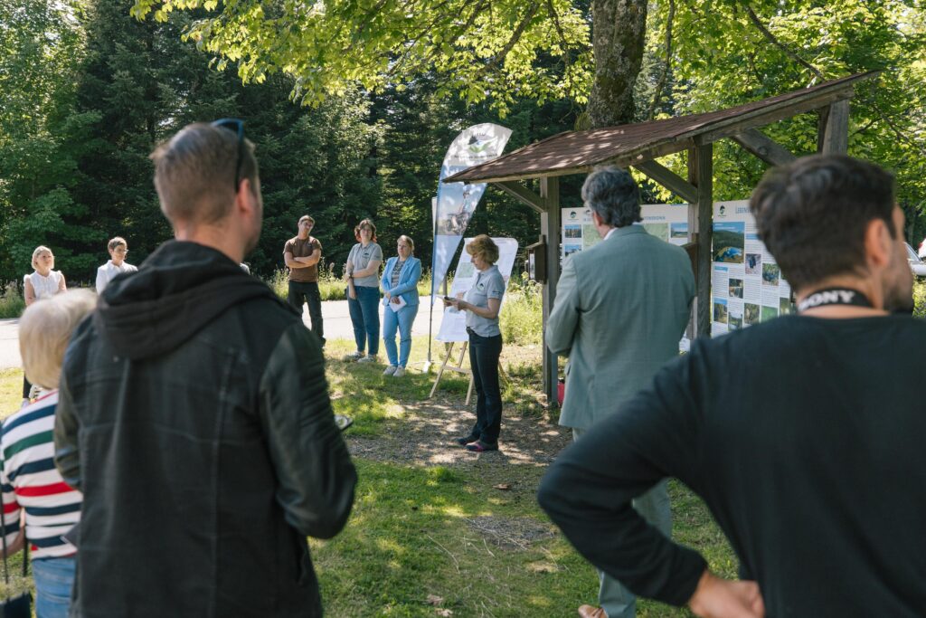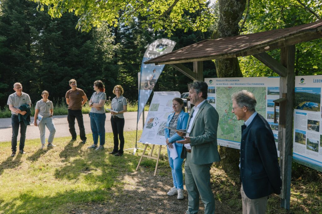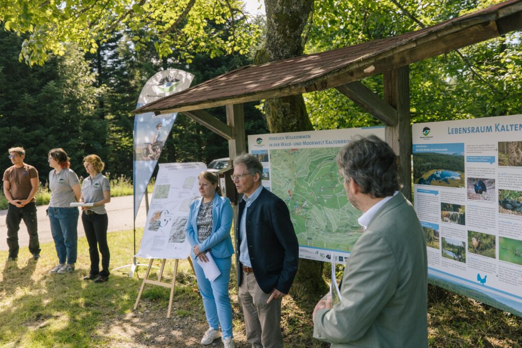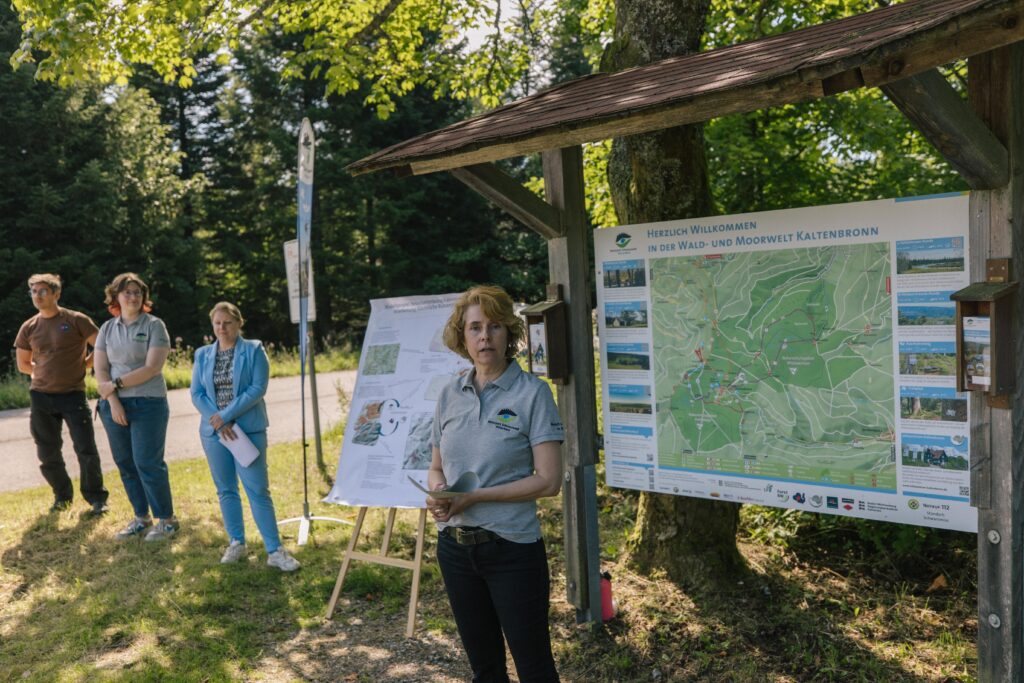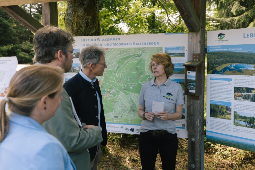 Der Naturpark Schwarzwald Mitte/Nord macht den beliebten Naturraum Kaltenbronn im Nordschwarzwald fit für die Zukunft: Mit der Besuchermanagement-Konzeption Kaltenbronn liegt nun ein umfassendes Maßnahmenpaket vor. Dieses hat der Naturpark Schwarzwald Mitte/Nord am Donnerstag (7. August) vor einer der neuen Besucher-Informationstafeln auf dem Kaltenbronn vorgestellt.