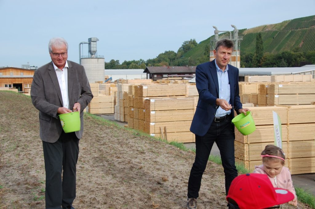 Neben dem Geschäftsführer des Sägewerks, Christian Keller, war auch Oberacherns Bürgermeister Dietmar Stiefel zur Herbstaussaat gekommen. Der lobte die fleißigen Fünfjährigen: „Ich finde es toll, dass ihr mitmacht, damit ihr auch noch Bienen erleben könnt, wenn ihr mal so alt seid wie wir.“