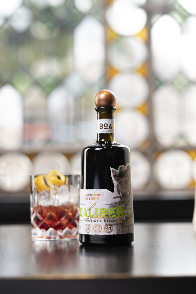 Seit Kurzem hat die BOAR Distillery ihr Sortiment um einen Likör erweitert: Der „Caliber 1844“ ist ein Kräuterlikör aus dem Schwarzwald. Seinen besonderen Charakter verleihen ihm 18 aromatische Beeren und 44 feine Kräuter aus seiner Heimat. Kalt mazeriert und für drei Monate eingelagert in Eichenfässern reift dieser Schwarzwaldlikör zu einem ganz besonderen Format – einem echten Caliber. Dieser Kräuterlikör verbindet die Anfänge der Brennerei auf dem Schwarzwaldhof im Jahr 1844 mit dem Hier und Jetzt. Die feinbeerigen, leicht säuerlichen Aromen aus schwarzer Johannis- und Preiselbeere, gepaart mit den fruchtigen Noten der Waldhimbeere und Holunder treffen auf die intensive Kräutervielfalt des Schwarzwalds. Mineralisiert durch das besondere Peterstaler Quellwasser aus eigener Quelle, veredelt und hergestellt mit BOAR Gin, ist dieser Schwarzwaldlikör ein sehr individueller Genuss.