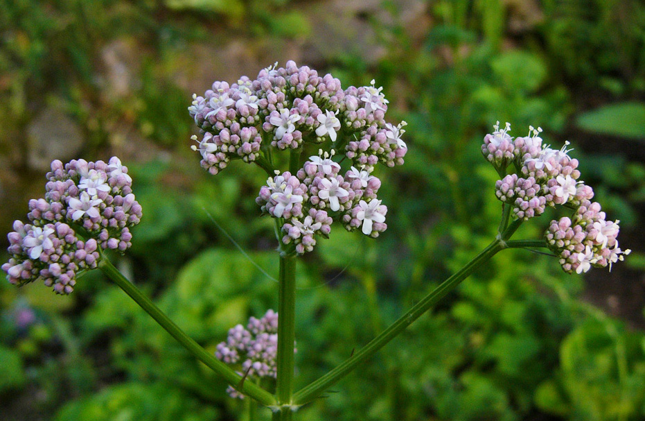 Zur Blütezeit von Juni bis August könnt ihr den Baldrian mit seinen halbkugeligen, zarten Blütendolden, die auf den hohen Stängeln wie über der Erde schweben, kaum übersehen. Seine Blütenstände setzen sich aus zahlreichen zarten, rötlich-weißen Blüten mit jeweils fünf Blütenblättern zusammen. Charakteristisch ist sein strenger, würziger, meist als penetrant beschriebener Geruch, den man durch Zerreiben der Blätter sofort riechen kann.