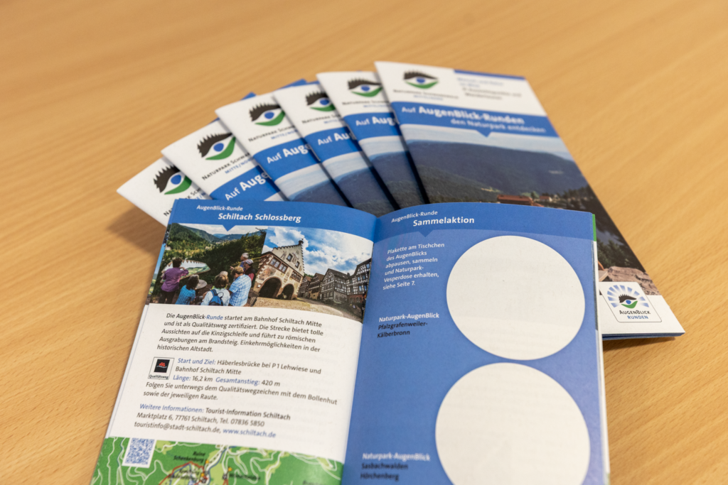 Die neue Broschüre mit Gewinn-Aktion zu allen 31 AugenBlick-Rundwanderwegen des Naturparks Schwarzwald Mitte/Nord ist ab jetzt verfügbar. Sie steht online auf der Internetseite des Naturparks unter naturparkschwarzwald.de im Download-Bereich bereit. Die Printversion ist kostenlos im Naturpark-Info-Shop in Bühlertal sowie in den Tourist-Infos im Naturpark-Gebiet verfügbar.