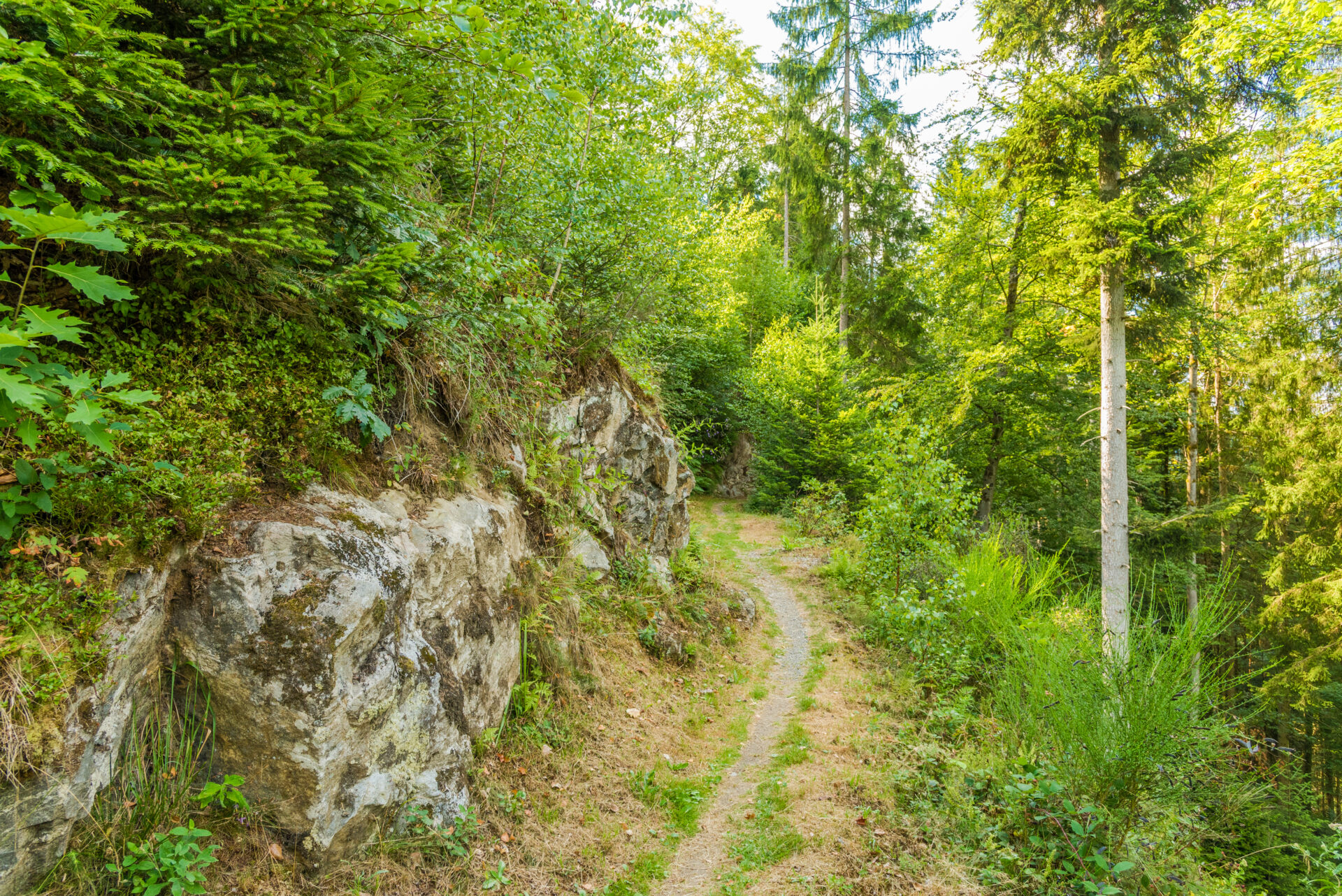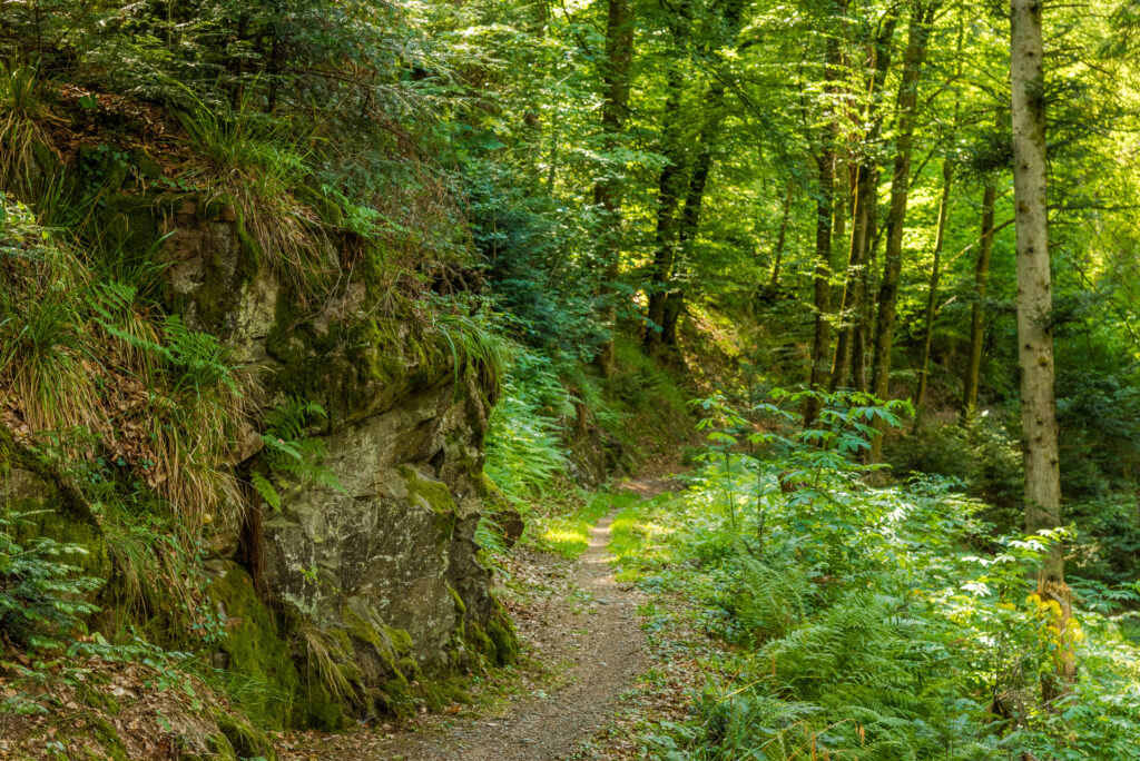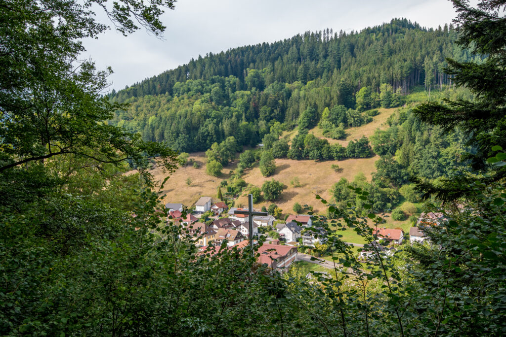 Durch den Jakobswald führt der Pfad hinab zum Franzosenfelsen. Der Sage nach wollten französische Soldaten die frei stehende Felsnadel ins Tal stürzen, scheiterten aber. Seit 1884 schmückt ein Kreuz den Felsen. Früher hieß er Rappenfelsen, vom althochdeutschen „Rappo“, was „Rabe“ bedeutet. Es geht weiter, vorbei am alten Hochbehälter in Richtung Rathaus und Innenstadt. Vor dem Rückweg zum Ausgangspunkt laden Geschäfte zum Bummeln und (hoffentlich bald wieder) Cafés und Restaurants zum Genießen ein.