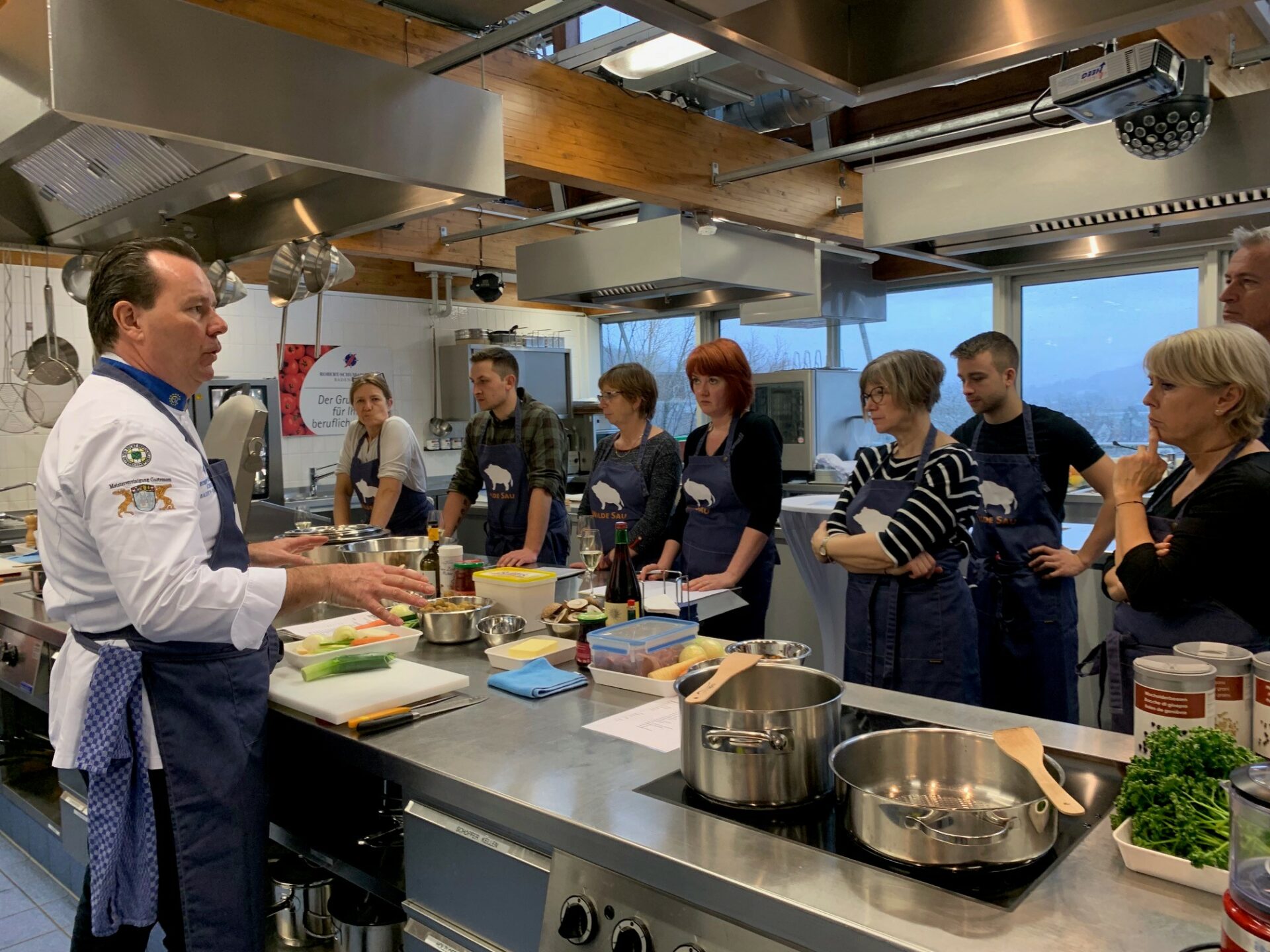 Großes Interesse für den Wildschwein-Kochkurs mit Gerd Astor, der auch an der Robert Schuman Schule in Baden-Baden Köche ausbildet.