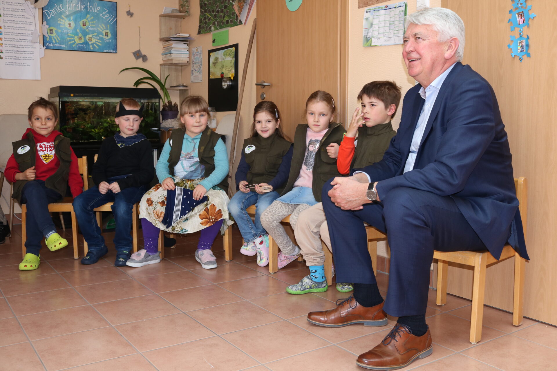 Den Kindern erzählte Hauk, dass es bei ihm damals keinen Kindergarten gab. „Ich habe mich nach dem Frühstück mit Freunden getroffen. Wir sind dann in den Wald gegangen und haben Steinburgen gebaut oder Fangen gespielt.“
