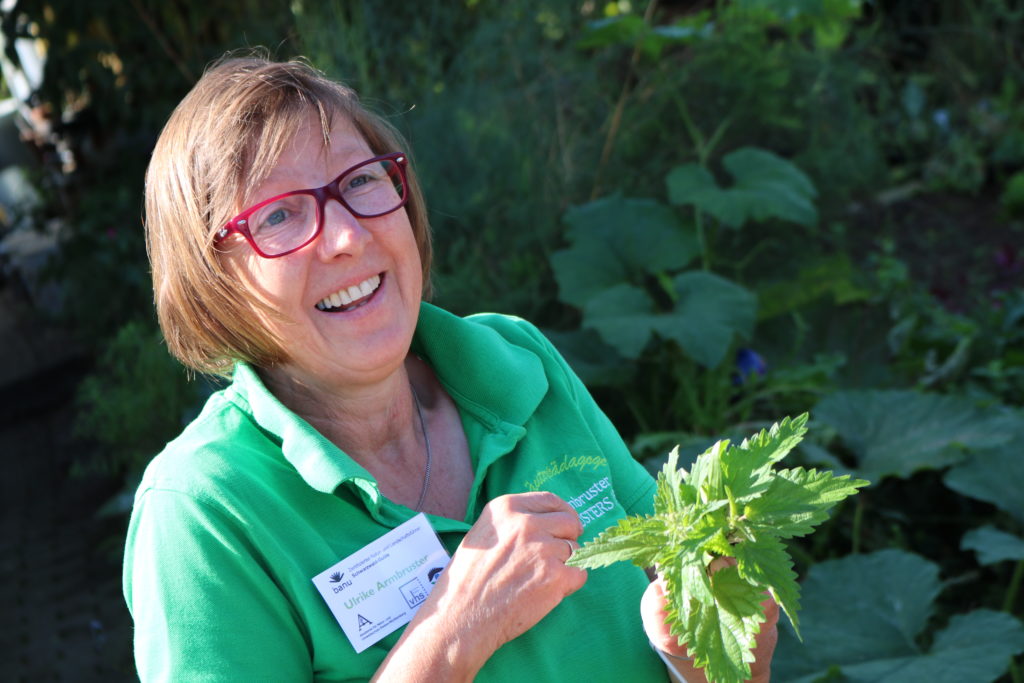Ulrike Armbruster erklärt die vielfältigen Verwendungsmöglichkeiten und Eigenschaften der Brennnessel.