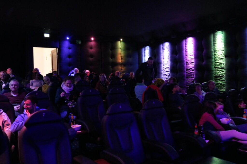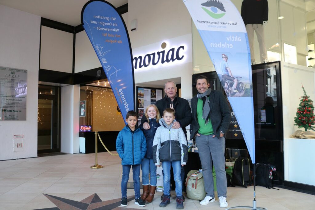 Das Glück den Film doch noch im Kino zu sehen, hatten dank des badischen Energieversorgers badenova die 28 Gewinner des Naturpark-Gewinnspiels. Am 16. Dezember lud badenova mit dem Naturpark die per Los ausgewählten Gewinner ins Öko-Kino Moviac in Baden-Baden zu einer exklusiven Vorführung von „Wildwestwegs“ ein. Dabei war auch Sandra Liebermann. Sie reiste extra für das Film-Event mit der Bahn aus Freiburg an. „Ich liebe den Schwarzwald mit seiner vielseitigen Natur- und Kulturlandschaft. Ich wandere viel durch den Schwarzwald und bin auch schon Abschnitte des Naturpark-Radwegs gefahren“, erzählt Liebermann bevor sie die Treppen ins Moviac-Kino hinuntersteigt. Da der Kinosaal über gerade einmal 48 Plätze verfügt, ist die Atmosphäre besonders familiär. Ein Erlebnis, das in Erinnerung bleiben wird!