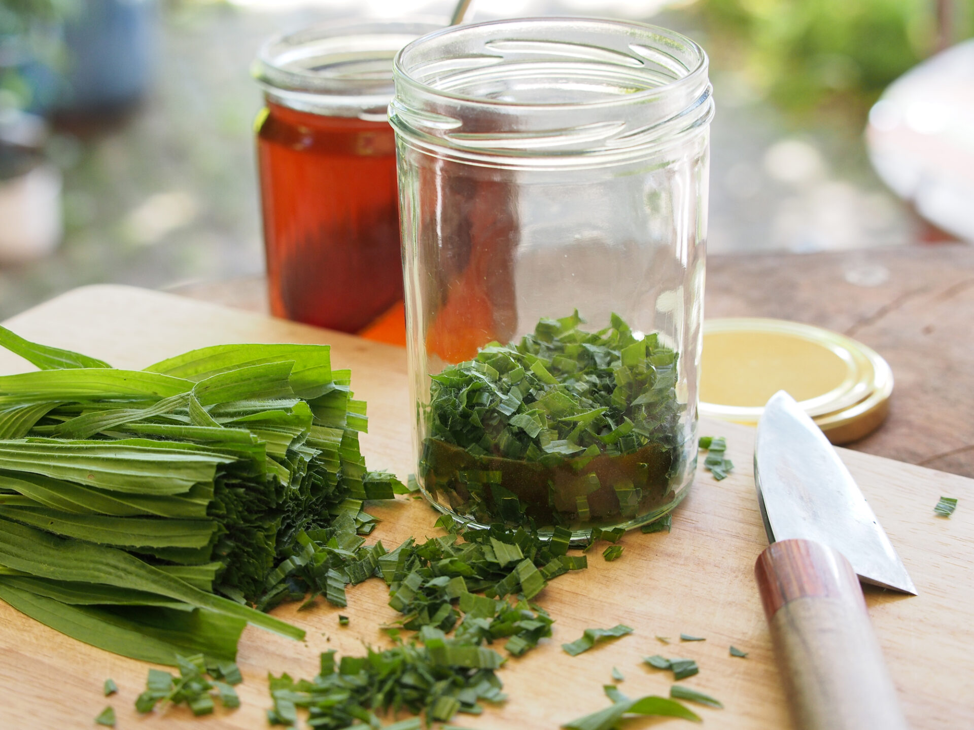 Die Spitzwegerichblätter verlesen und in feine Streifen schneiden. Im Wechsel schichtet ihr die kleingeschnittene Spitzwegerichblätter mit dem Honig in das Glas. Die letzte Schicht besteht aus Honig, der den Spitzwegerich abdeckt. Den Sirup acht bis zwölf Wochen ausziehen lassen, dann abseihen und in kleinere Portionen aufteilen. So habt ihr mehrere kleine Mengen, die bei Bedarf aufgebraucht werden können.