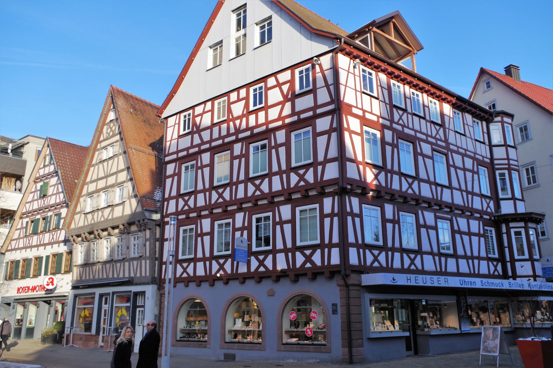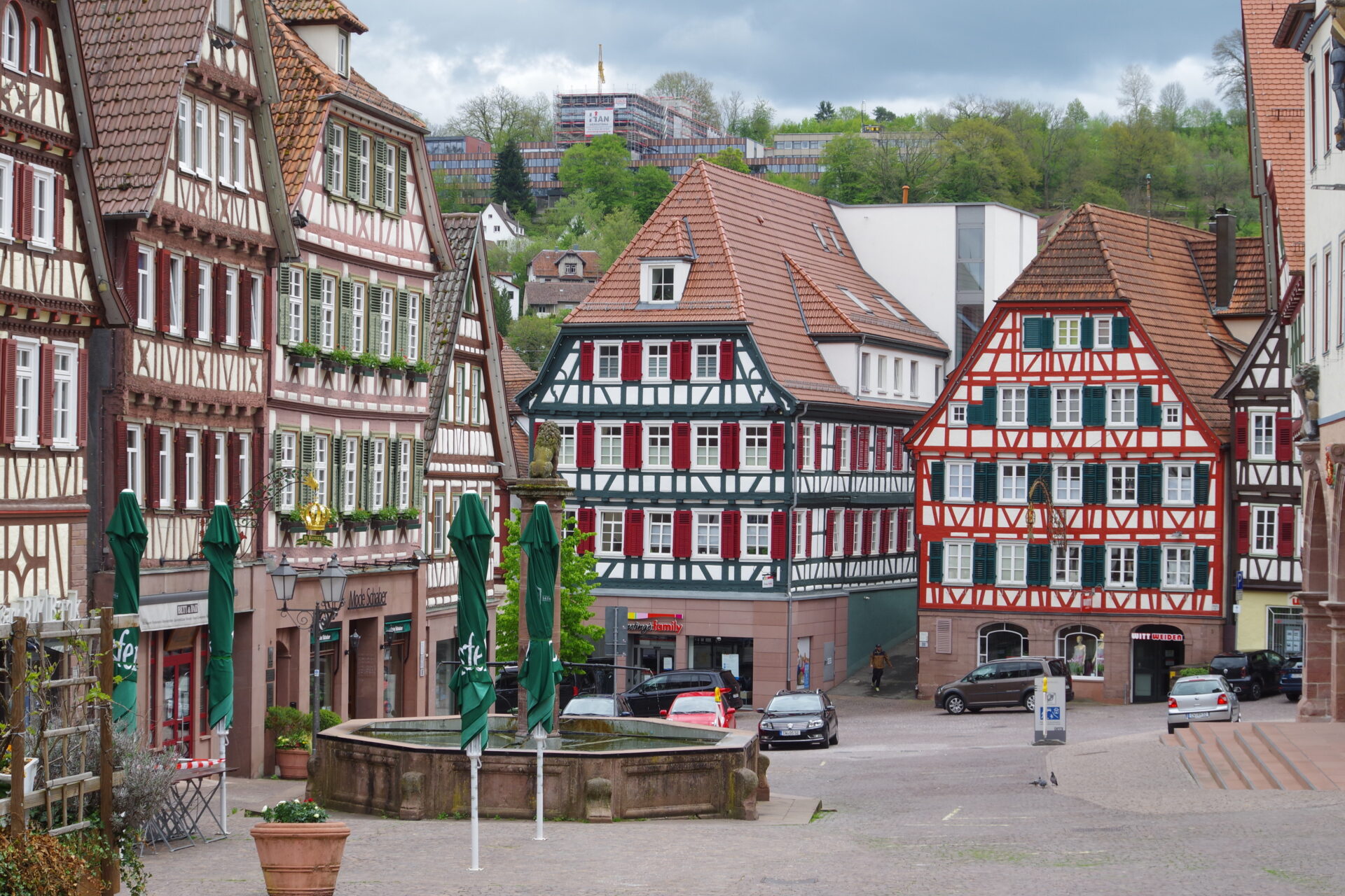 Am Hauptwegweiser Beim Wölflesbrunnen geht es geradeaus weiter und dann kommen wir an einem Wildschweingehege vorbei. Wir halten uns immer rechts und am Schild „Schafott“ gehen wir rechts in den Wald und wandern an einem ehemaligen Schafott vorbei. Wir folgen einem schmalen Pfad. Dann kommt links ein Abzweig mit Steinstufen, den wir nehmen. Wir kommen am Aussichtspunkt Gimpelstein vorbei und gehen die Stufen hinab. Es geht über eine kleine Holzbrücke und dann gehen wir nach rechts den steilen Calwer Stadtgarten hinab, bis wir im Zentrum Calws auf dem Marktplatz ankommen, wo wir unsere Stiefelreise beenden.
