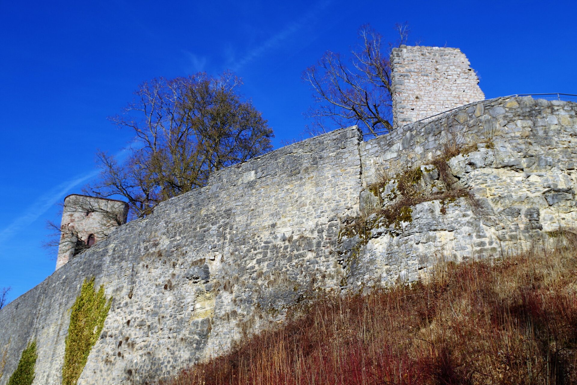 Etappe zwei starten wir am Hauptwegweiser Nagold Rathaus und folgen der Markierung des Gäurandswegs Richtung Ruine Hohennagold. Wir gehen über eine Brücke und befinden uns zwischen dem Fluss Waldach und dem Fluss Nagold. Dann folgen wir am Fluss entlang den Schildern Richtung Wanderheim Killberg. Am Hauptwegweiser Badesteg überqueren wir erneut eine Brücke und gehen weiter Richtung Ruine Hohennagold. Der Weg führt am Badepark vorbei und dann den Schlossberg hinauf. Der Weg geht recht steil bergauf, bis wir den Hauptwegweiser Schlossbergsattel erreichen. Von hier machen wir einen Abstecher zur Burgruine unternehmen und genießen die tolle Aussicht auf die Stadt.