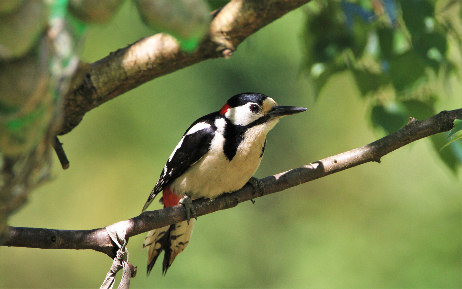 Wer im Wald spazieren geht, hört oft sein Hämmern oder Klopfen. Er trommelt immer nur kurz, aber dafür recht häufig. Sein lateinischer Name „Dendrocopos major“ bedeutet denn auch nichts Anderes als „großer Baumhämmerer“. Man findet den Buntspecht aber nicht nur im Laub-, Misch- oder Nadelwald, sondern auch in Parks oder in Gärten – überall, wo es große Bäume gibt. Deshalb findet er sich auch gerne mal am Futterhäuschen oder am Meisenknödel in Privatgärten ein.