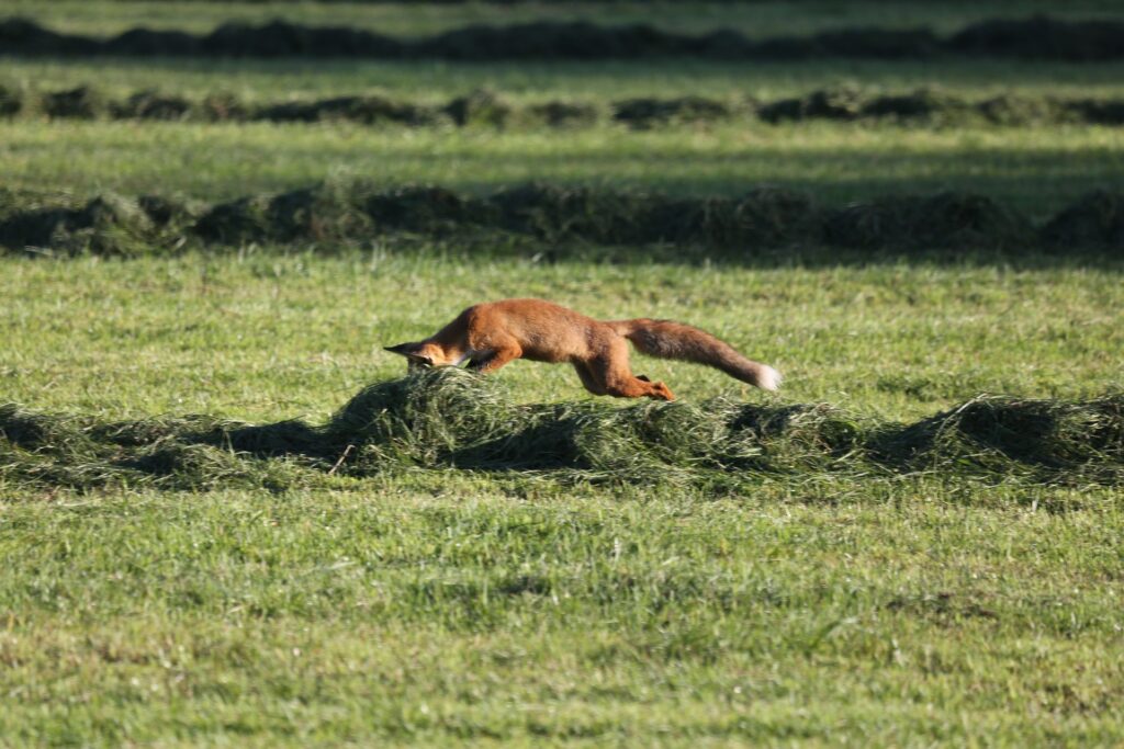 Der Fuchs ist eben ein Raubtier, das auch von Fleisch lebt. Als solches, auch als gelegentlicher Aasfresser, spielt er eine wichtige Rolle für die Artenvielfalt und das Gleichgewicht in der Natur. Mäuse sind seine hauptsächliche Jagdbeute, doch er kann auch Hasen, größere Vögel wie Enten und Gänse sowie junge oder kranke Rehe reißen. Doch insgesamt er ist ein anspruchsloser Allesfresser. Er liebt süße Früchte wie Steinobst und Beeren. Weil er so anpassungsfähig und schlau ist, hat er sich in vielen Großstädten angesiedelt, wo er Mülleimer durchwühlt und sich manchmal an Vogel- und Katzenfutter vergreift. Gleichzeitig jagt er aber auch Ratten, Mäuse und Vögel. Für den Menschen stellt er keine Gefahr dar. Umgekehrt kann er in der Stadt nicht gejagt werden und hat keine große Scheu vor Menschen mehr. Deshalb kann man ihn dort auch am helllichten Tage beobachten. Einzig der Autoverkehr bedeutet eine Gefahr für ihn.