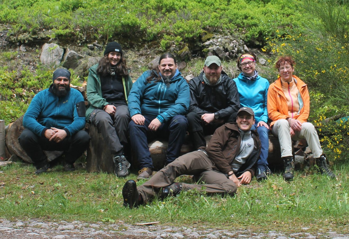 Es regnet Bindfäden. Nein, es schüttet. Vermummt stapfen die Trekkerinnen und Trekker herbei. Hier am Camp Grimbach wollen sie die Nacht verbringen, Feuer machen, zusammensitzen und den Waldgeräuschen lauschen. Doch im Moment ist das einzige Geräusch ein lautes Rauschen vom heftigen Regen, der ausgerechnet an diesem Samstagabend im Mai niedergeht. Trekking-Guide Nikolas gibt kurze Anweisungen: „Packt die Rucksäcke in eine Plane ein, sonst weichen sie auf. Dann holt das Tarp raus.“ Alle packen an und es ist zu spüren, dass sie schon am zweiten Tag ein eingespieltes Team sind.