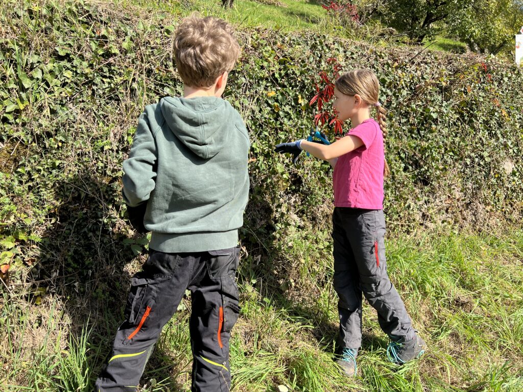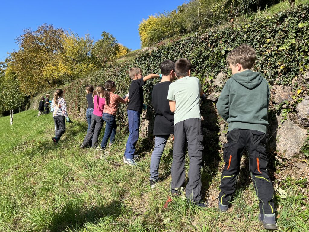 Einige der Schülerinnen und Schüler haben bereits im vergangenen Jahr bei der Ehrensache Natur-Aktion mitgeholfen. So zum Beispiel Alisa. „Es macht mir Spaß zusammen mit meinen Freundinnen die Trockenmauern von Efeu und Brombeerranken zu befreien“, sagt die Naturpark-Schülerin. Und ihre Freundin Clara ergänzt: „Ich helfe gerne bei Natur-Aktionen. Die Leute haben sich viel Mühe gegeben, diese Mauern zu bauen. Es wäre schade, wenn sie nun verwildern und kaputt gehen. Ich will dazu beitragen, die Mauern zu erhalten – für die Gemeinde. Denn ich liebe Bühlertal!“ Schülerin Valentina fügt hinzu: „Ich wünsche mir, dass die Natur so schön bleibt, wie sie ist. Deshalb helfe ich dabei mit, sie zu schützen.“