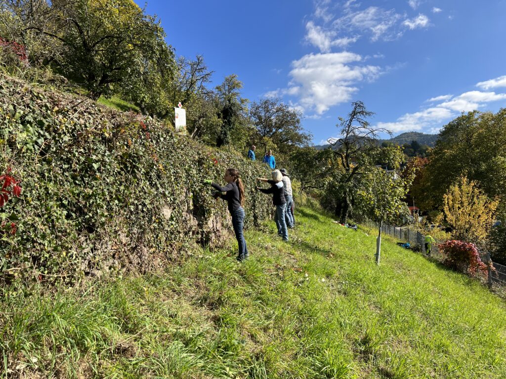 Die historischen Weingärten mit ihren vielen Trockenmauern prägen das Landschaft- und Ortsbild von Bühlertal. „Damit diese schöne und traditionelle Kulturlandschaft erhalten sowie für Einheimische und Gäste zugänglich bleibt, brauchen wir diese regelmäßigen Pflegeaktionen“, erläutert Tino Rettig, Leiter der Tourist-Information in Bühlertal. Und Yvonne Flesch, Stellvertretende Geschäftsführerin des Naturparks, ergänzt: „Die Ehrensache Natur verbindet Naturschutz mit Gemeinschaftssinn. Hier erleben wir, wie stark die Region zusammenhält, wenn es um unsere Heimat geht.“