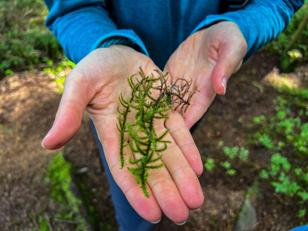 Anita Splitthof steht auf einem schmalen Wanderpfad, der von Wurzeln durchzogen ist. Rechts und links des idyllischen Weges breiten sich strahlend grüne Moosteppiche zwischen den Bäumen und an ihren Stämmen aus. „Es ist sehr angenehm, während einer Wanderung auch einmal barfuß über so einen Moosteppich zu laufen“, sagt Splitthof. „Das ist Schlafmoos“, erklärt sie und zieht einen ganzen Lappen der speziellen Moosart von einem Baumstamm ab. Woher der Name wohl stammt? „Im Mittelalter haben die Menschen Schlafmoos auch als Schlafmatte benutzt. Tagsüber konnten sie es einrollen und einfach transportieren – so wie wir heutzutage Luftmatratzen zum Trekken verwenden“, erläutert Splitthof.