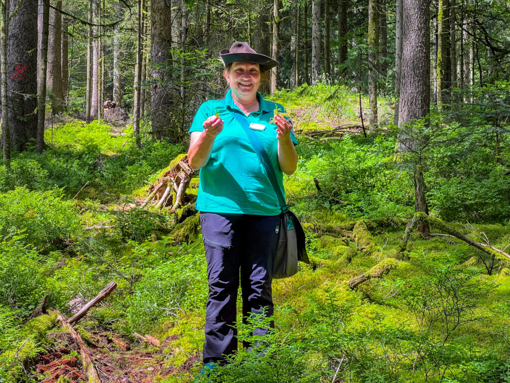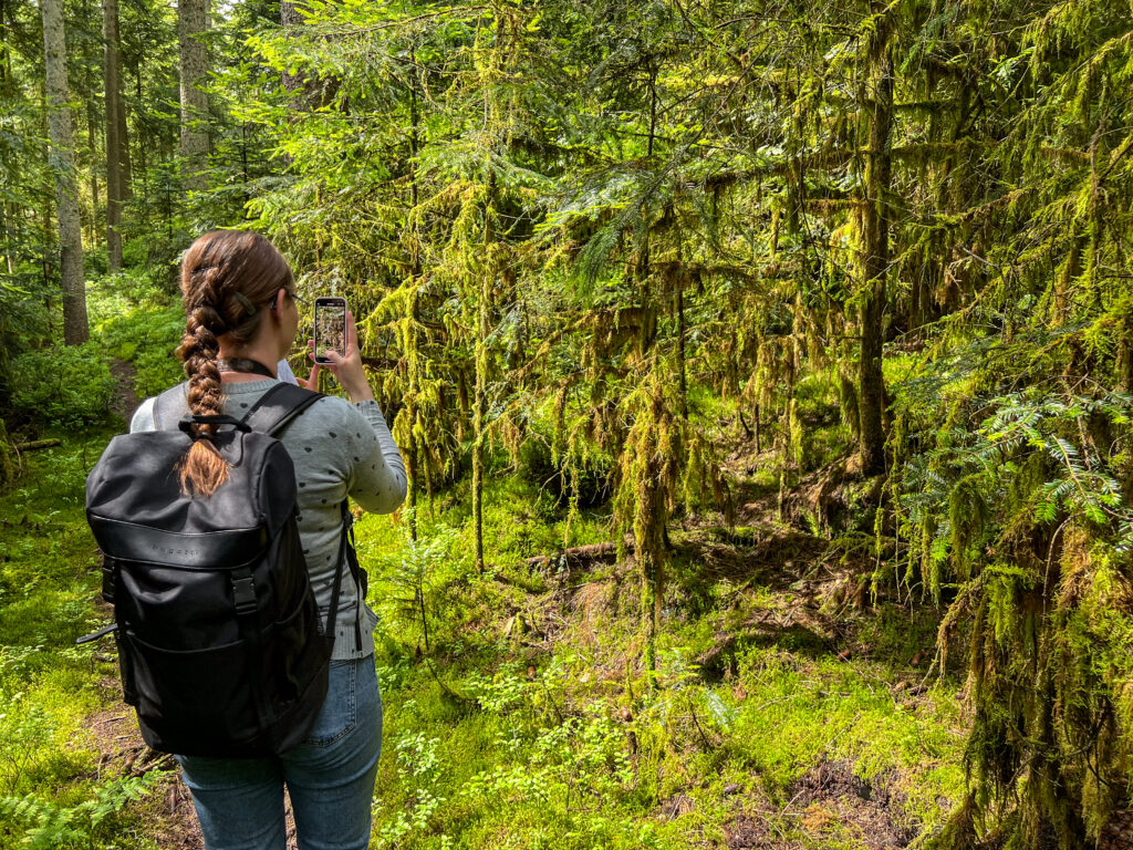 Warum Moose in Zeiten des Klimawandels besonders wichtig sind und welche Superkräfte Moose sonst noch bieten – das weiß Schwarzwald-Guide Anita Splitthof aus Alpirsbach (Landkreis Freudenstadt). Sie ist vom Naturpark Schwarzwald Mitte/Nord ausgebildete Schwarzwald-Guide und zertifizierte Natur- und Landschaftsführerin. Außerdem ist sie seit 2021 Naturpark-Klimabotschafterin. Auf einer Tour durch den Freudenstädter Wald in Lauterbad am Donnerstag (6. Juni) gab sie ihren Gästen Einblicke in die faszinierende Welt der Moose.