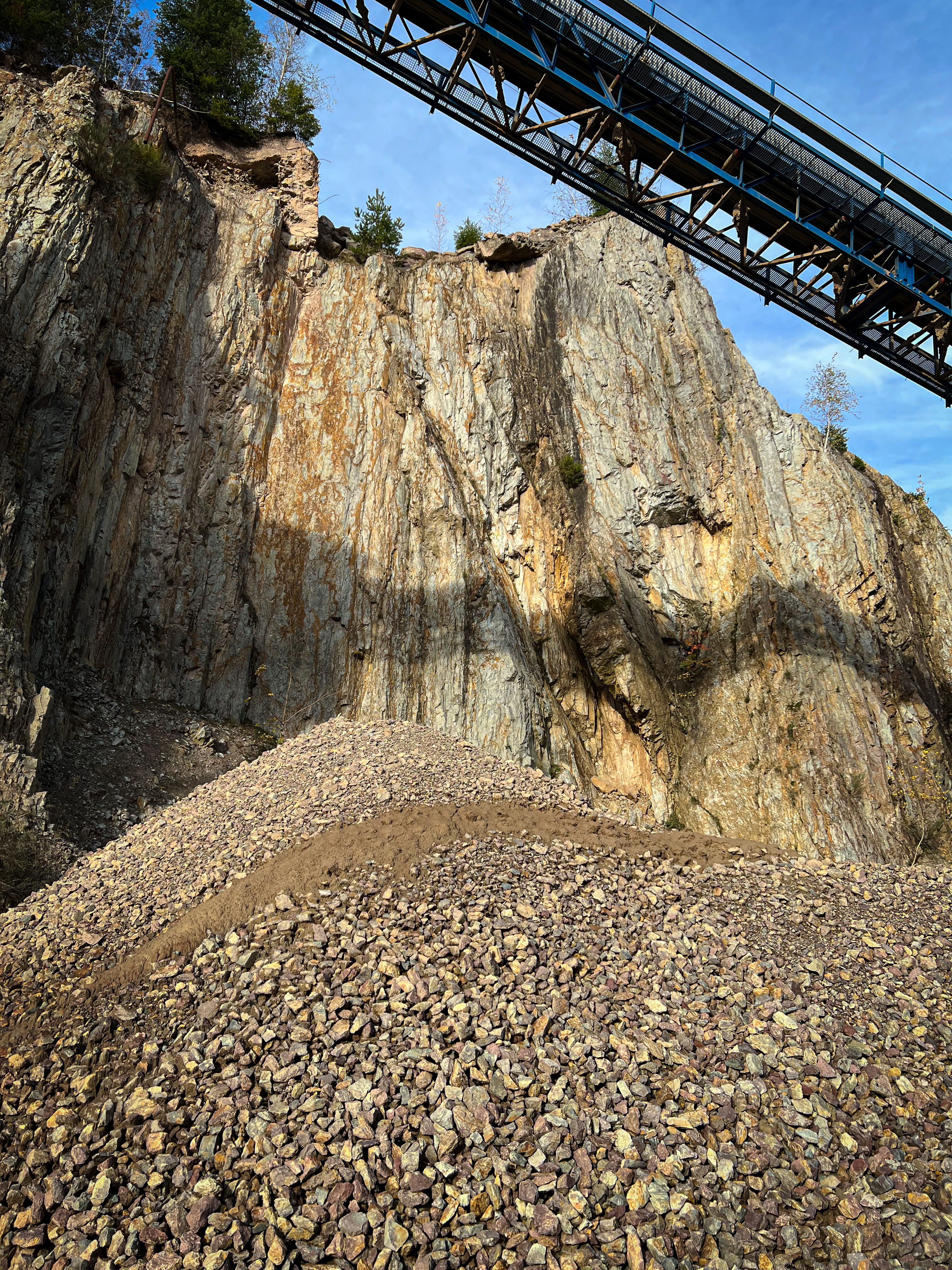 So fällt der Flächenverbrauch im Tagebau aufgrund der hohen Abbauhöhe relativ gering aus und den Transport kann das Unternehmn dank der betriebseigenen Bahnverladestation sehr effizient betreiben. Ergänzend zu den Ausführungen Steibelts erklärte Megerle den Teilnehmern die geologischen Hintergründe. „Sie stehen hier auf einem ehemaligen Vulkan“, so der Geograf. „Die Lava ist allerdings schon seit fast 300 Millionen Jahren erkaltet.“