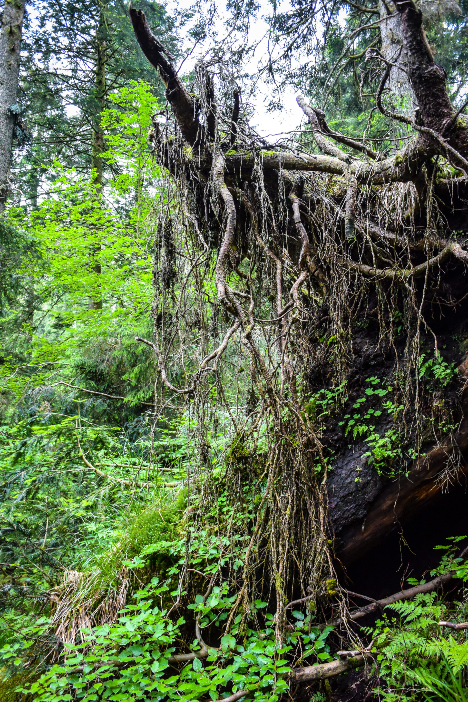 Auf der knapp 15 Kilometer langen Tour wandert ihr von Baiersbronn-Schwarzenbach durch schattigen Wald bis zum Huzenbacher See, einem eiszeitlichen Karsee. Gleich dahinter geht es auf einem urigen Pfad über Wurzeln, Felsblöcke, Baumstämme und kleine Wasserrinnen steil die Karwand hinauf. Oben belohnt euch ein Rastplatz mit großartigem Blick auf den Karsee hinunter und über bewaldete Schwarzwaldhöhen. Eine Himmelsliege und eine Schutzhütte laden zum Verweilen ein. Von nun an wandert ihr entspannt bergab an Tannenriesen und lauschigen Plätzen vorbei.