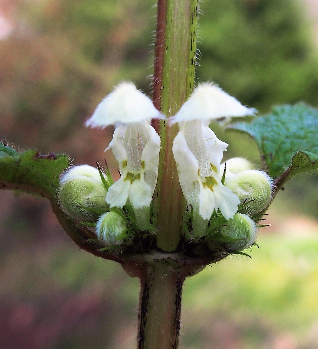 Auf den ersten Blick sieht diese Pflanze der Brennnessel täuschend ähnlich. Sie imitiert sie und ist überall dort zu finden, wo Brennnesseln wachsen. Von der Hecke bis zum Wegesrand, an Waldrändern, auf Ruderalflächen und gerne in Gemeinschaft anderer naher Verwandter. Die Rede ist von der Weißen Taubnessel (Lamium album), die sich als Täuscher und Trickser der Brennnessel angepasst hat. Ihre Tarnung fliegt spätestens bei Berührung auf, wenn sie nicht „brennt“! Sie ist nämlich „taub“, da sie keine Brennhaare wie die Brennnessel hat. Diese „tauben“ oder „zahmen Nesseln“ haben damit eine besondere Strategie entwickelt, um sich vor Fraßfeinden zu schützen. Wenn sich Hase oder Reh an Brennnesseln im wahrsten Sinne des Wortes „das Maul verbrannt“ haben, lassen sie auch die Taubnesseln aufgrund der Ähnlichkeit links liegen. So kann die Taubnessel im Schatten der Brennnessel ihr gesichertes Dasein fristen.