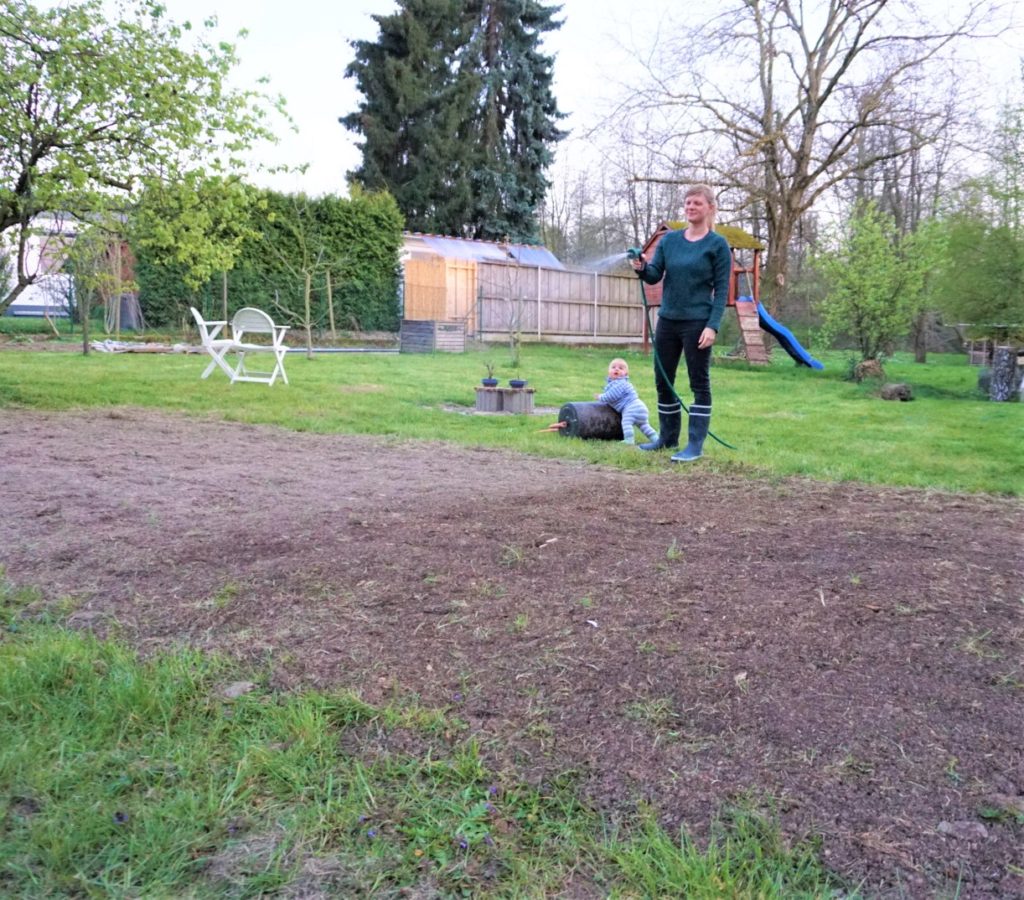 Die Fläche sollte nun möglichst vier bis sechs Wochen feucht gehalten werden, damit die Samen gut quellen und keimen können.
