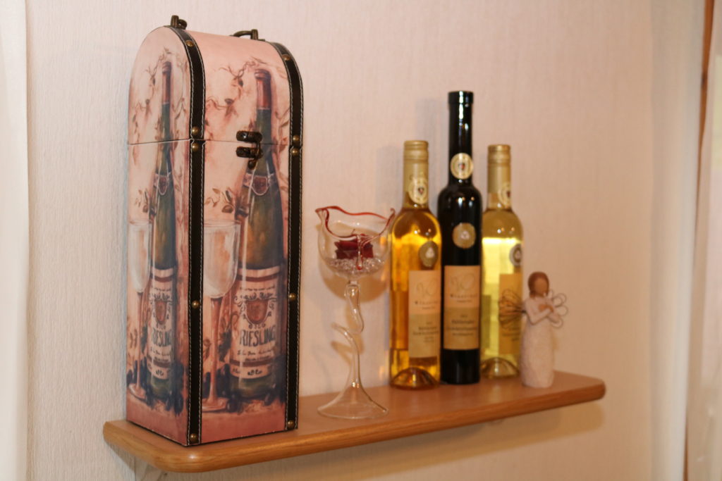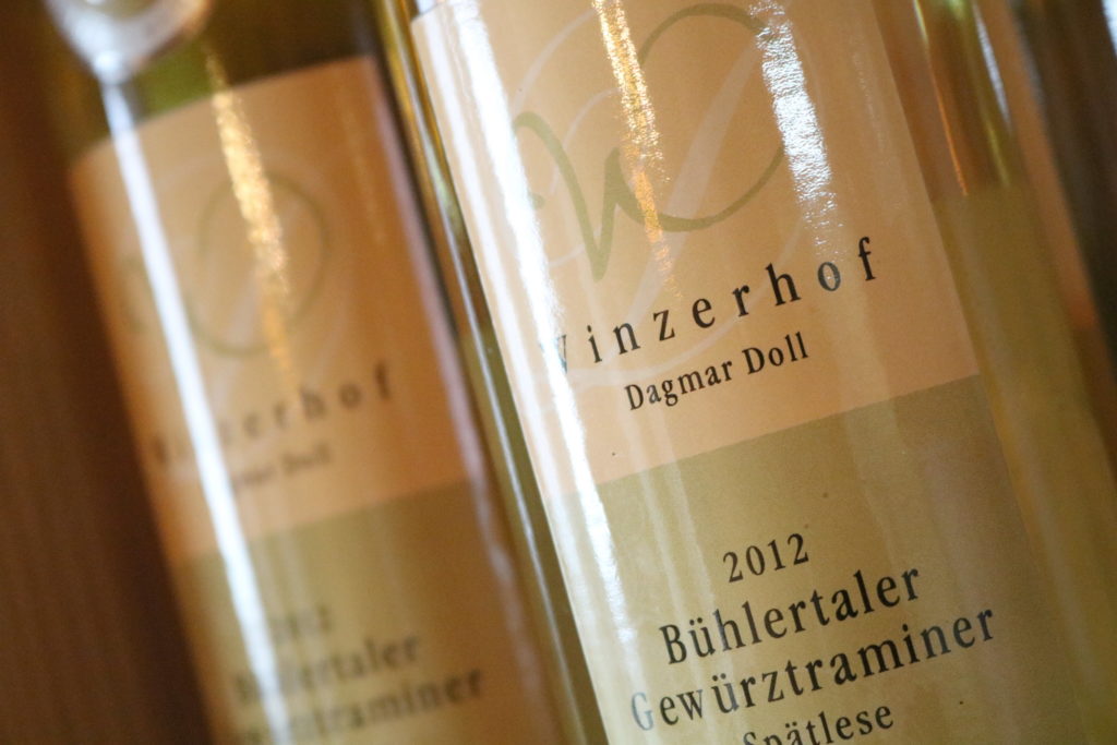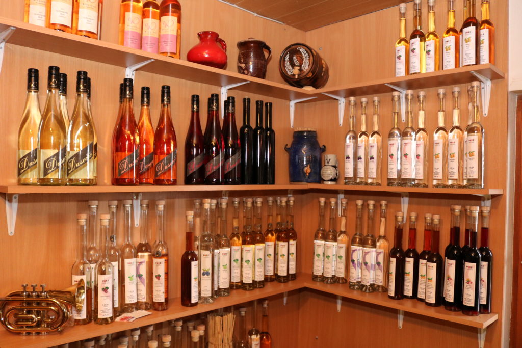 Ein Auswahl des Winzerhofs Dagmar Doll an Gekeltertem und Gebranntem.