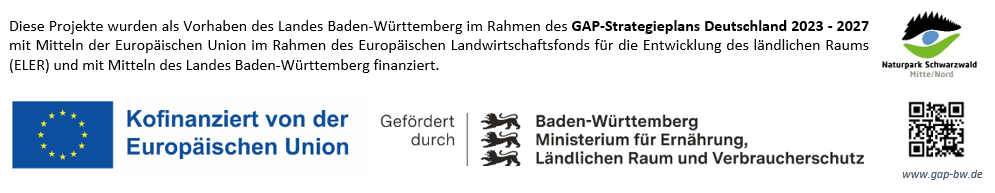 Die oben aufgeführten Projekte wurden als Vorhaben des Landes Baden-Württemberg im Rahmen des GAP-Strategieplans Deutschland 2023-2027 mit Mitteln der Europäischen Union im Rahmen des Europäischen Landwirtschaftsfonds für die Entwicklung des ländlichen Raums (ELER) und mit Mitteln des Landes Baden-Württemberg finanziert.